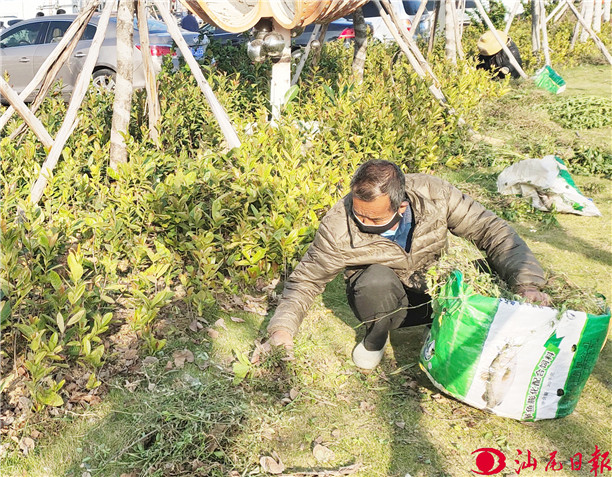 近日,園林工人戴著口罩在市區(qū)綠道清理雜草,美化環(huán)境。