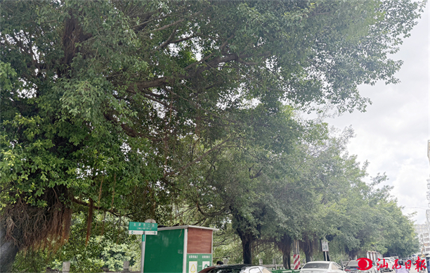 記者日前實(shí)地走訪龍津西二路,觀察到該路段樹木枝干高聳,枝葉層層疊疊覆蓋路燈上方,形成天然“屏障”。其中,樹枝往龍津河方向肆意伸展,加劇了遮蔽程度?,F(xiàn)場(chǎng)可見,路燈燈光在樹葉遮擋下幾乎無(wú)法穿透,夜間照明區(qū)域明顯縮小,道路昏暗難辨。